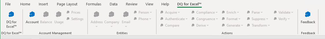 For Example, Our DQ for Excel™ Add-in should now look like this: